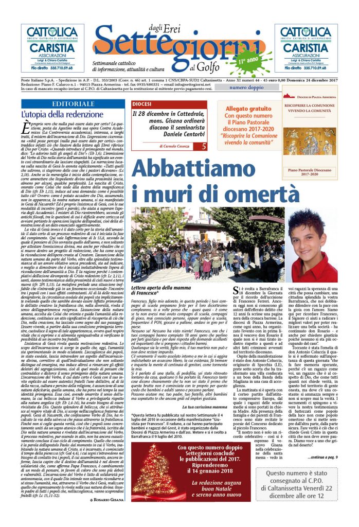 24 Dicembre 2017 numeri del settimanale Settegiorni Settegiorni n. 44-45 del 24 dicembre 2017 Clicca qui per leggere il numero in formato PDF CONDIVIDI SU