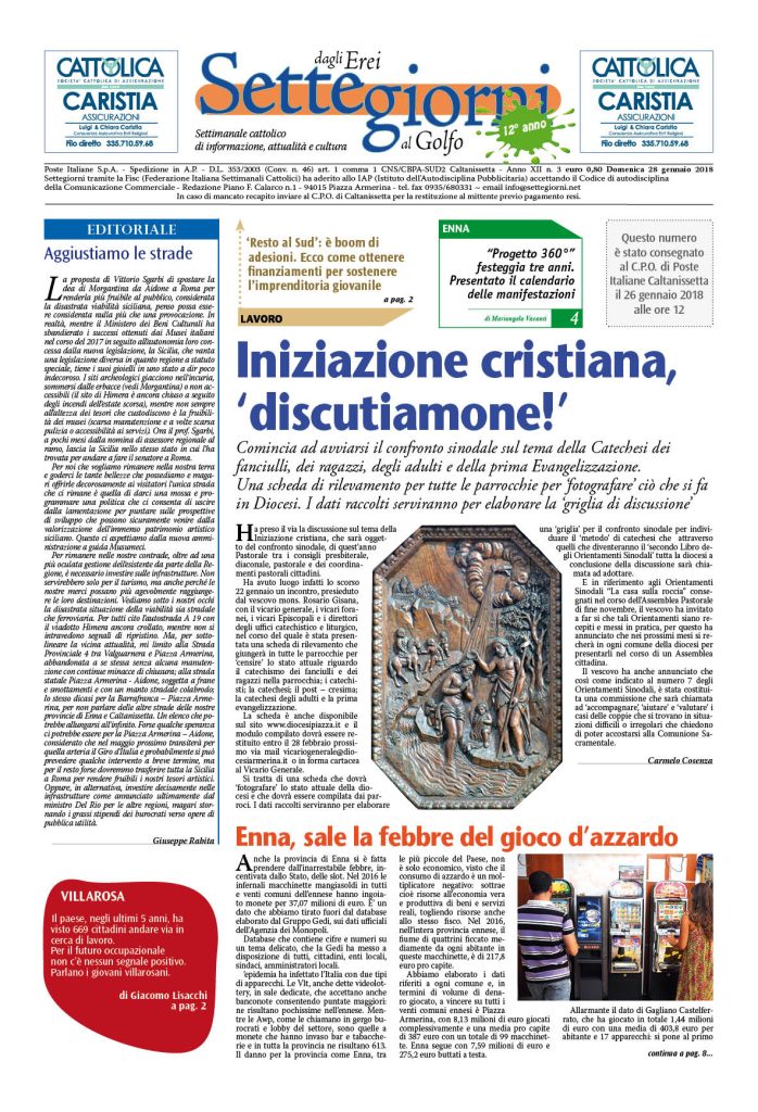 28 Gennaio 2018 numeri del settimanale Settegiorni Settegiorni n. 3 del 28 gennaio 2018 Clicca qui per leggere il numero in formato PDF CONDIVIDI SU