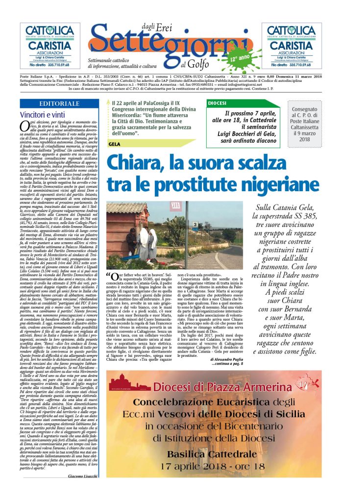 11 Marzo 2018 numeri del settimanale Settegiorni Settegiorni n. 9 dell’11 marzo 2018 Clicca qui per leggere il numero in formato PDF CONDIVIDI SU