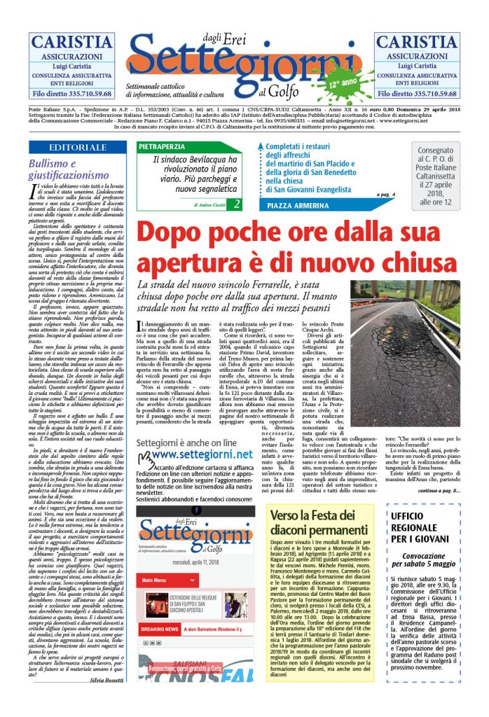 29 Aprile 2018 numeri del settimanale Settegiorni Settegiorni n. 16 del 29 aprile 2018 Clicca qui per leggere il numero in formato PDF CONDIVIDI SU