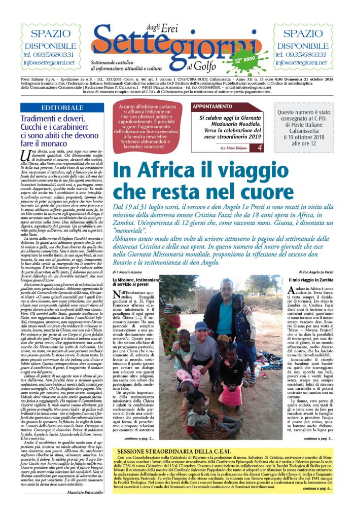 21 Ottobre 2018 numeri del settimanale Settegiorni Settegiorni n. 35 del 21 ottobre 2018 Clicca qui per leggere il numero in formato PDF CONDIVIDI SU