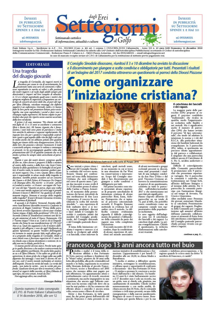 16 Dicembre 2018 numeri del settimanale Settegiorni Settegiorni n. 43 del 16 dicembre 2018 Clicca qui per leggere il numero in formato PDF CONDIVIDI SU