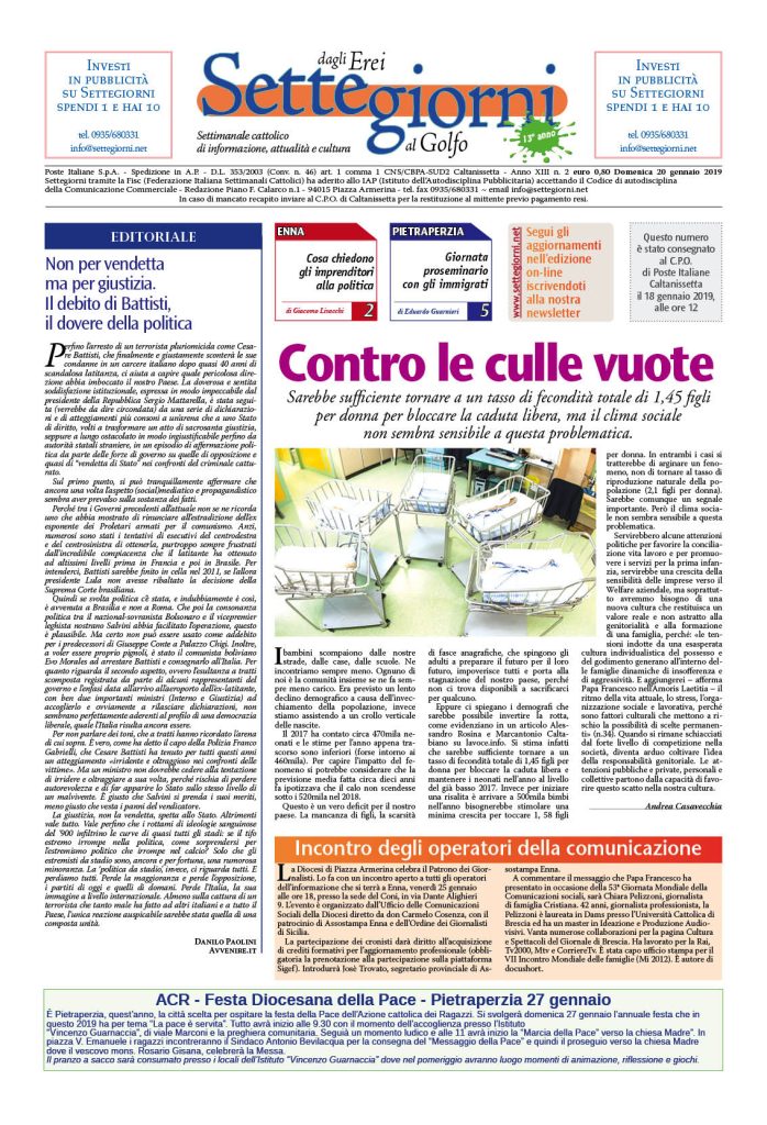 20 Gennaio 2019 numeri del settimanale Settegiorni Settegiorni n. 2 del 20 gennaio 2019 Clicca qui per leggere il numero in formato PDF CONDIVIDI SU