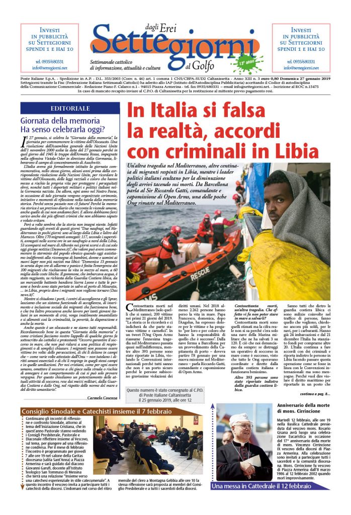 27 Gennaio 2019 numeri del settimanale Settegiorni Settegiorni n. 3 del 27 gennaio 2019 Clicca qui per leggere il numero in formato PDF CONDIVIDI SU