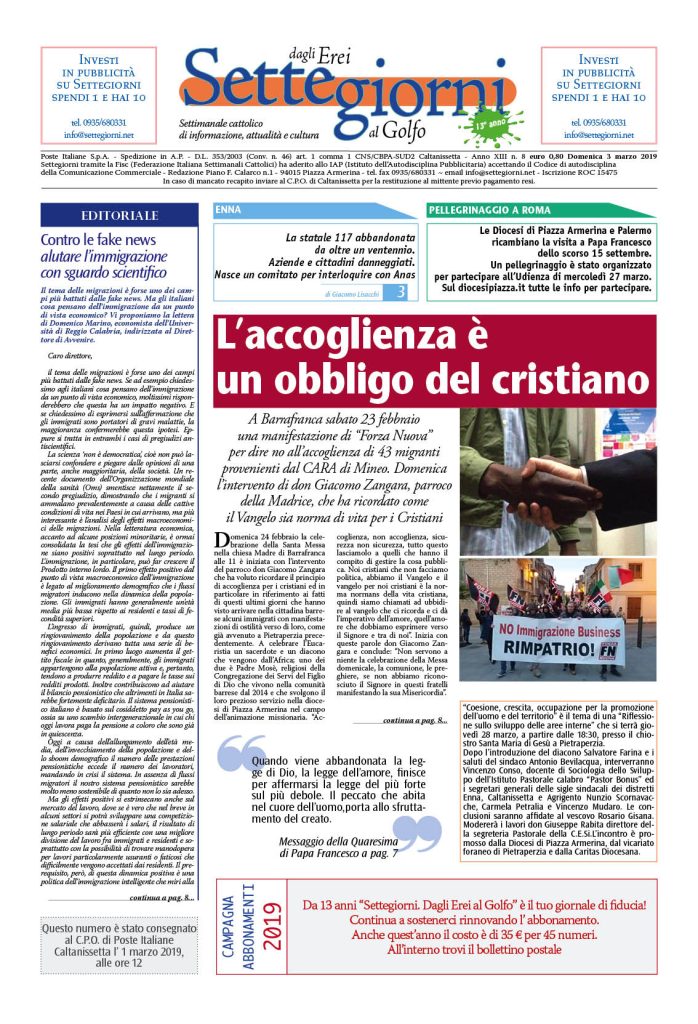 3 Marzo 2019 numeri del settimanale Settegiorni Settegiorni n. 8 del 3 marzo 2019 Clicca qui per leggere il numero in formato PDF CONDIVIDI SU