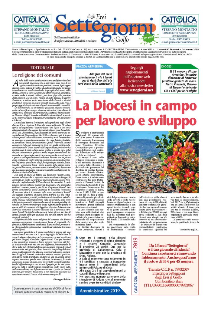 24 Marzo 2019 numeri del settimanale Settegiorni Settegiorni n. 11 del 24 marzo 2019 Clicca qui per leggere il numero in formato PDF CONDIVIDI SU