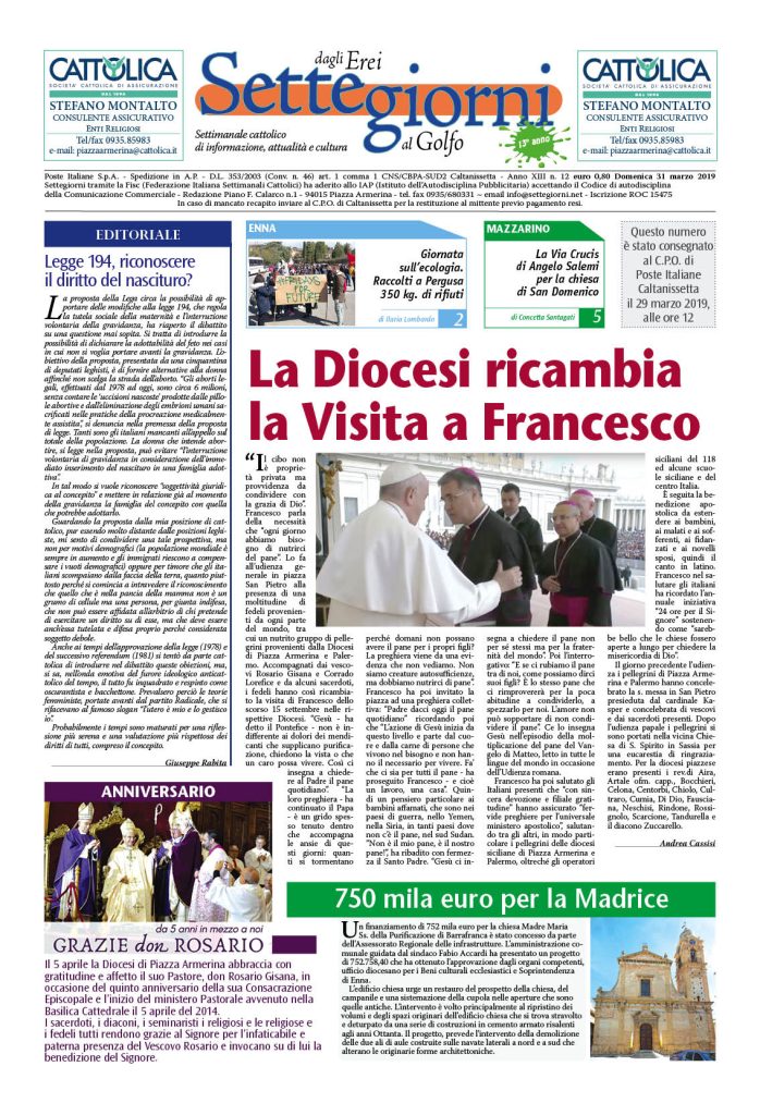 31 Marzo 2019 numeri del settimanale Settegiorni Settegiorni n. 12 del 31 marzo 2019 Clicca qui per leggere il numero in formato PDF CONDIVIDI SU