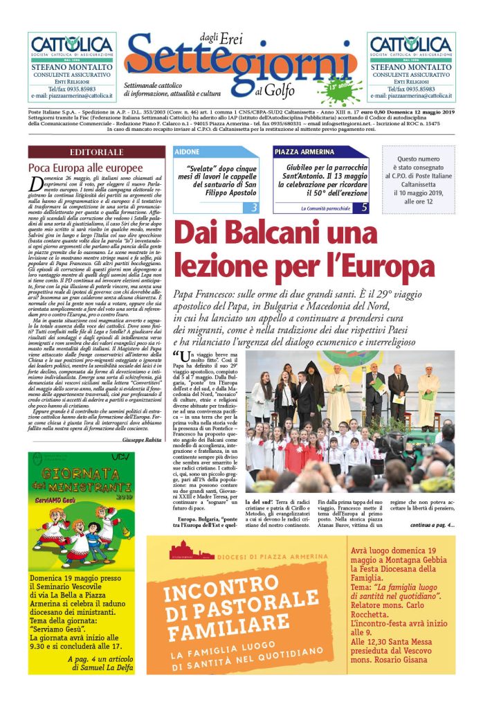12 Maggio 2019 numeri del settimanale Settegiorni Settegiorni n. 17 del 12 maggio 2019 Clicca qui per leggere il numero in formato PDF CONDIVIDI SU