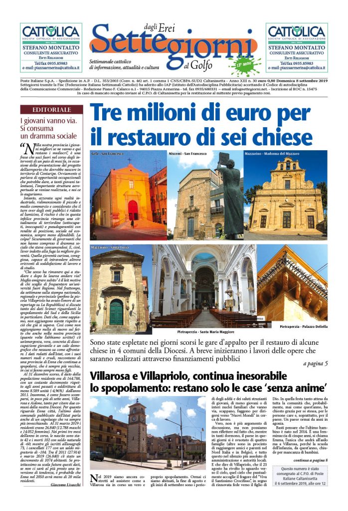 8 Settembre 2019 numeri del settimanale Settegiorni Settegiorni n. 30 dell’8 settembre 2019 Clicca qui per leggere il numero in formato PDF CONDIVIDI SU