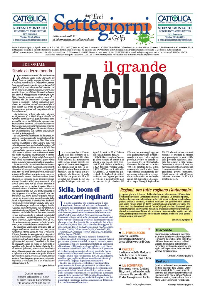 13 Ottobre 2019 numeri del settimanale Settegiorni Settegiorni n. 35 del 13 ottobre 2019 Clicca qui per leggere il numero in formato PDF CONDIVIDI SU