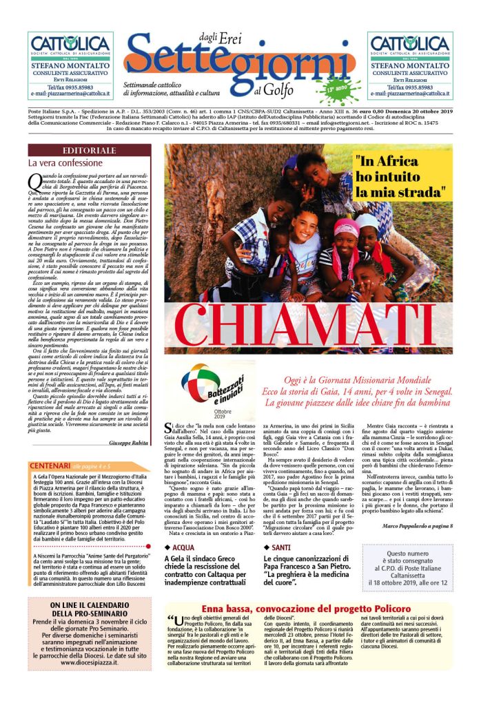 20 Ottobre 2019 numeri del settimanale Settegiorni Settegiorni n. 36 del 20 ottobre 2019 Clicca qui per leggere il numero in formato PDF CONDIVIDI SU