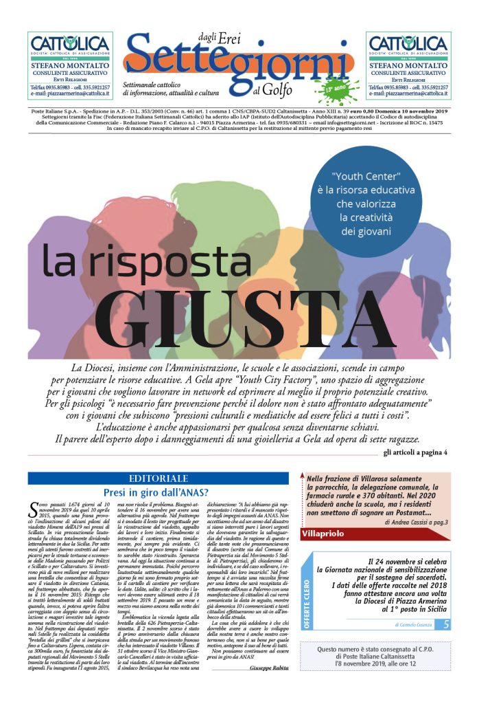 10 Novembre 2019 numeri del settimanale Settegiorni Settegiorni n. 39 del 10 novembre 2019 Clicca qui per leggere il numero in formato PDF CONDIVIDI SU