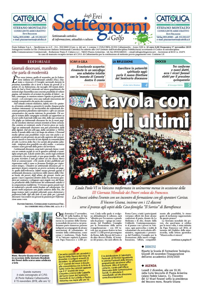 17 Novembre 2019 numeri del settimanale Settegiorni Settegiorni n. 40 del 17 novembre 2019 Clicca qui per leggere il numero in formato PDF CONDIVIDI SU