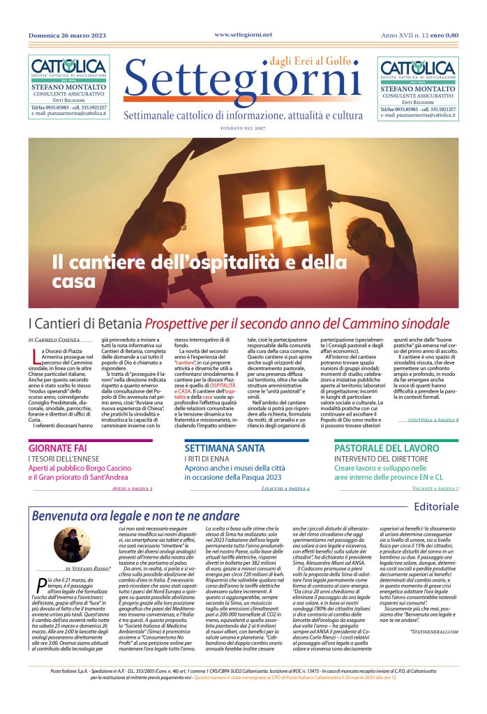 26 Marzo 2023 numeri del settimanale Settegiorni Settegiorni n. 12 del 26 marzo 2023 Clicca qui per leggere il numero in formato PDF CONDIVIDI SU