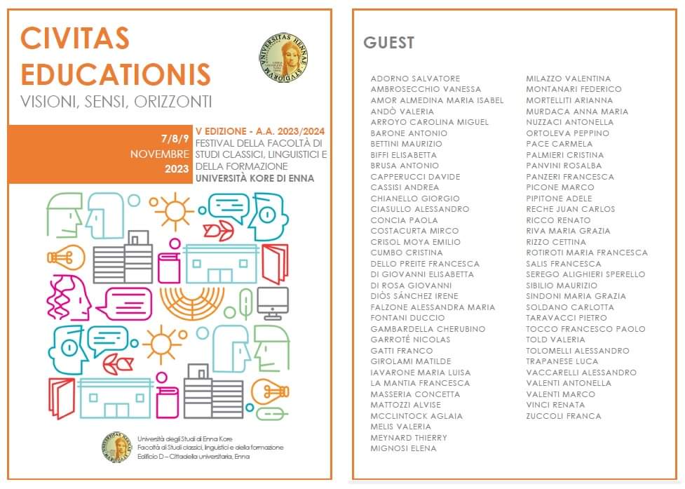 Torna “Civitas educationis. Visioni, sensi, orizzonti”, il festival della Facoltà di Studi classici, linguistici e della formazione dell’Università Kore di Enna. Dal 7 al 9 novembre, scrittori, pedagogisti, archeologi, linguisti, esperti di comunicazione, storici e giornalisti si alterneranno in una serie di incontri su diritto, formazione, didattica, educazione, Cina, parità di genere, archeologia, innovazione, architettura, donne, antimafia, sport.