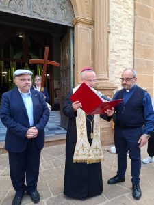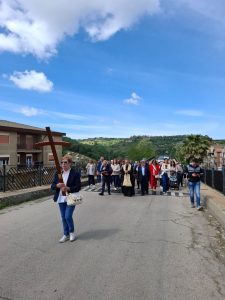 Insieme, sotto la guida del Vescovo, abbiamo camminato sacerdoti, diaconi, direttori di uffici, dirigenti scolastici, onorevole, sindaca, vicesindaco, rettori delle confraternite e confrati, presidenti di associazioni, catechisti, ministri della comunione, insegnanti, alunni, scout, volontari Caritas e volontari di vario tipo, ex detenuti e detenuti in permesso, insieme all’incontro con il Signore risorto!