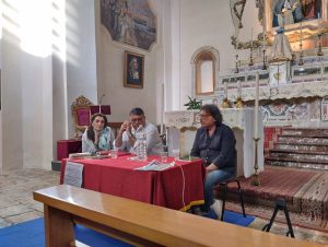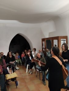 Il suo libro, che definisce “irregolare” perché scritto in epoche diverse del suo percorso ma che risente in parte di un periodo di malattia, è stato apprezzato in particolare da Stella Spagnolo, di Barrafranca, che aveva letto il libro e ha fatto notare la semplicità del linguaggio di Sara, la limpidità del suo modo di scrivere ed esporre il suo racconto che parte spesso da esperienze vissute e rielaborate e non da letture di libri, sebbene siano spesso citati passi del Vangelo e della Bibbia ma anche di testi orientali e buddisti. A tal proposito, Angelo Maddalena, che ha dialogato con Sara, ha letto un passo del libro in cui è citato Mosè sul Monte Nebo, il quale sa che non vedrà la Terra Promessa ma non per questo desiste dagli sforzi e dalla ricerca, lo fa per il suo popolo, ed è citato anche il passo del Deuteronomio in cui Mosè esprime la consapevolezza che il suo popolo si allontanerà da Dio, ma non per questo lui perde la speranza e la forza di andare avanti. Angelo ha fatto notare una similitudine con la vicenda di Tonino Miccichè, il quale è morto per una causa collettiva e non ha visto realizzato ciò per cui lui e altri suoi coetanei e militanti hanno lottato e, nel suo caso, pagato con la vita. Alessandra Ristuccia, anche lei abitante a Modica da molti anni ma nativa di Caltanissetta, con le sue canzoni in siciliano, scritte da lei e riprese da Rosa Balistreri e dalla tradizione popolare siciliana, ha spesso citato Tonino Micciché e le lotte popolari passate e recenti, ha denunciato il Ddl Sicurezza da poco approvato dal governo Meloni che vieta e criminalizza ancora di più la partecipazione popolare a manifestazioni di piazza per esprimere dissenso e protesta.