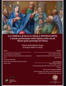 Lunedì 9 giugno alle ore 19.30, presso la chiesa dello Spirito Santo a Enna, organizzato dalla parrocchia San Bartolomeo, di cui parroco è don Sebastiano Rossignolo, e dalla confraternita dello Spirito Santo , di cui rettore è Francesco Petralia, avrà luogo una conferenza dal tema “La Chiesa dalla e nella Pentecoste”.