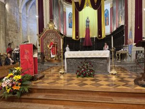 Subito dopo ci si è recati processionalmente al duomo, eretto in occasione della festa di Maria Santissima della Visitazione, per decreto del Vescovo, mons. Rosario Gisana, a chiesa giubilare . “La figura di Barnaba – ha spiegato p. Angelo nell’omelia – è sottovalutata ma è molto importante. Barnaba è un uomo che sa rinunciare a tutto ciò che possiede. E difatti, la Parola di Dio non è teoria ma va vissuta in pienezza. Non portate nulla con voi perché l’operaio ha diritto al suo nutrimento. Barnaba ci insegna ad essere distaccati dai soldi”. Un passaggio importante il parroco ha fatto sul sentimento dell’invidia, sempre rapportandolo al comportamento di Barnaba, che gioisce della ricchezza degli altri e così dovrebbe fare ogni cristiano cercando di non vedere nell’altro un concorrente ma un fratello dalla cui ricchezza spirituale si può trarre soltanto beneficio. Infine ha lasciato un compito ai parrocchiani, ovvero quello, di imitare le tre virtù di San Barnaba, la missionarietá, l’essere uomo di pace e il distacco dalle cose materiali. Non ha mancato di ricordare il compianto Papa Francesco e durante la preghiera dei fedeli, a proposito di missionarietà, l’assemblea ha pregato anche per Cristina Fazzi, medico missionario nello Zambia e fiore all’occhiello della parrocchia, alla quale, anche chi scrive è orgoglioso di appartenere.