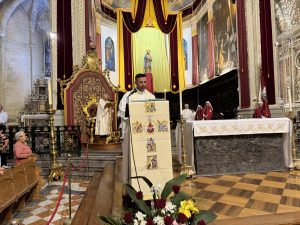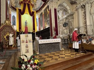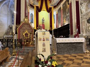 Accolta nella serata di domenic 15 giugno nel duomo di Enna, la confraternita del Sacro Cuore di Gesù. I confrati, difatti, guidati dal parroco di San Cataldo, don Carmelo Salinitro e dal rettore Fabio Garofalo, hanno traslato a spalla, la vara con il simulacro del Sacro Cuore stesso. Presente anche p. Pio Lovetti. Ha fatto gli onori di casa il parroco del duomo, mons. Enzo Murgano che ha presieduto la liturgia Eucaristica, animata dalla corale Maria Santissima della Visitazione e dai medesimi confrati del Sacro Cuore. A concelebrare, gli anzidetti padri Salinitro e Lovetti. “È sempre una gioia – ha detto padre Murgano, nell’omelia – accogliere una confraternita che giunge in questa chiesa Madre”. Va ricordato che la festa liturgica del Sacro Cuore, ricade, quest’anno, il 27 giugno, mese, questo, dedicato al Sacro Cuore, ma ad Enna, dove la devozione è molto antica e forte, viene solennizzata e celebrata, di solito, l’ultima domenica di giugno, tuttavia, quest’anno è stata anticipata al 15, poiché il 22 si celebra il Corpus Domini e la relativa processione, e il 29, nella Festa dei Santi Pietro e Paolo vi è la solenne apertura e traslazione del simulacro di Maria Santissima della Visitazione, Patrona del popolo ennese, dalla cappella dei Marmi all’altare centrale del duomo. Domenica, la Chiesa Universale celebrava la Santissima Trinità, per cui, nell’omelia, padre Murgano, ha, innanzitutto, posto l’accento su Dio Uno e Trino, fino a collegare la Trinità stessa, con l’Amore infinito del Padre che si effonde dall’alto della Croce tramite il suo cuore trafitto, dal quale sgorgano sangue ed acqua, metafora della “contaminazione” di Dio con l’uomo peccatore. “La nostra vita – ha spiegato p. Murgano – è vita trinitaria e da lì inizia la nostra relazione con Dio e la nostra esperienza di fede; da lì siamo tempio dello Spirito Santo uniti a Cristo come tralci veri. Da lì inizia una storia che ci proietta verso L’Eternità e fissiamo lo sguardo su Gesù con la docilità del gregge che ascolta la voce del Pastore ovvero del Maestro, Gesù, che ci attira al suo Cuore Misericordioso”. Padre Murgano ha continuato la sua omelia cristologica specificando che “Cristo è la via che ci riconduce al padre. Egli, conoscendo la nostra debolezza, ha promesso il dono dello Spirito che grida in noi “Abbà Padre”, ed è lo Spirito che ci fa vivere la pienezza di vita in Cristo”. E ha concluso: “Questo è il nostro quotidiano che ci conduce verso l’eternità; sappiamo che quando egli si sarà manifestato saremo simili a lui. Con questa speranza noi camminiamo verso il cielo dove Dio sarà tutto in tutti”.