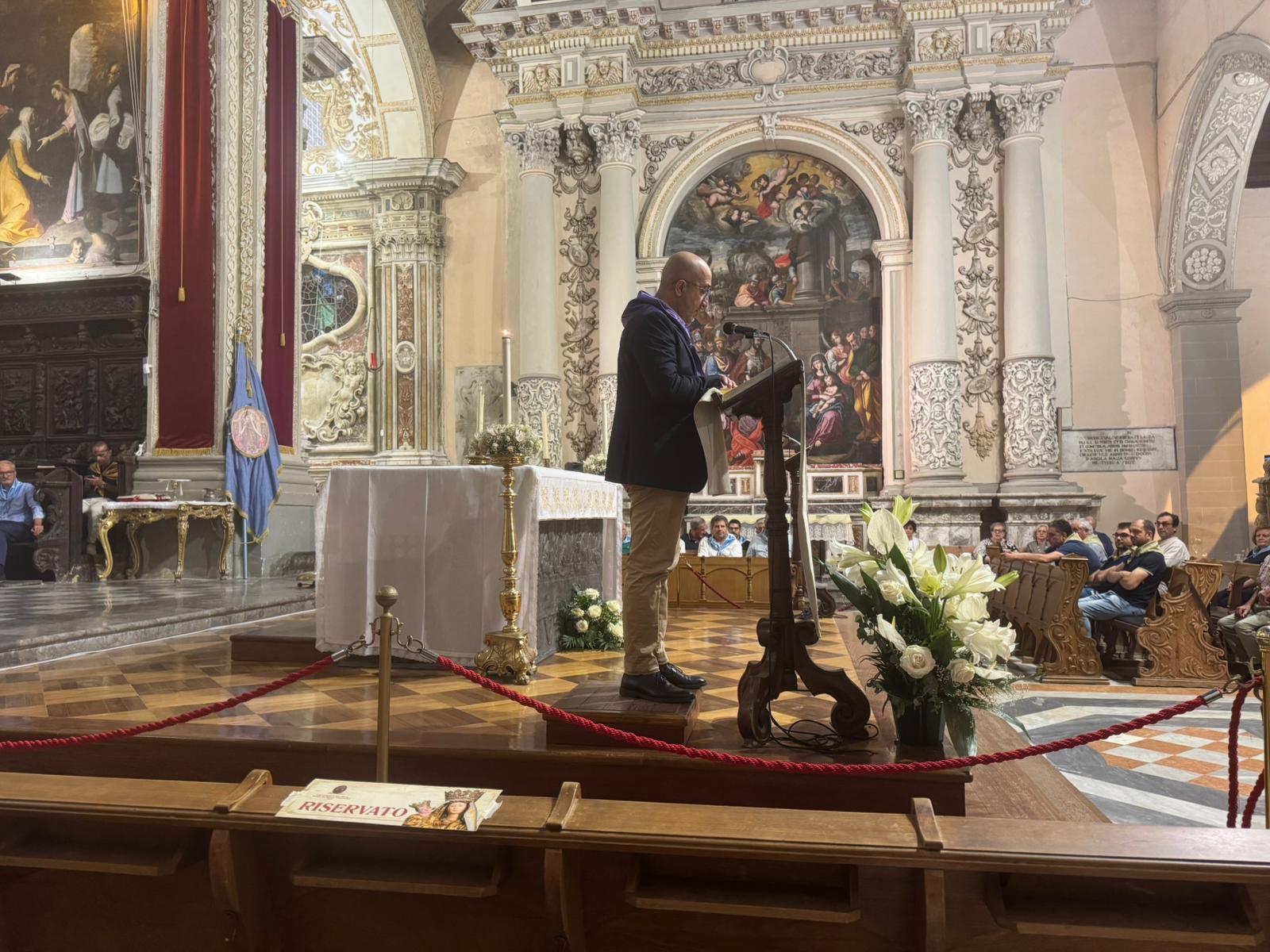 Per il parroco del duomo, ogni singola parola del Vangelo ha un profondo significato e, in particolare, ha spiegato che i fedeli imitano Gesù nell’ ordinarietà, compiendo ciò che fa parte del “loro solito” ovvero ascoltando la Parola di Dio. Il discorso programmatico di Gesù è fondamentale nella celebrazione del Giubileo perché il Giubileo stesso serve a ricordare , come appunto dice Gesù, l’anno di grazia del Signore, che non è un anno di 365 giorni, bensì un tempo di conversione, di cambiamento e di perdono, in cui si incontra il Cristo nell’accoglienza dell’altro. Ed è chiaro che in questo percorso, Maria, ricopre un ruolo trainante nell’accompagnare gli uomini verso il suo Figlio. “Cominciamo questo cammino con Maria, donna della speranza, ”ha aggiunto p. Murgano.?“E’ bello radunarsi in questo luogo e in questo tempo- ha detto p. Enzo ai confrati e ai loro familiari. “Stiamo vivendo il nostro Giubileo in questa esperienza di grazia e di speranza. Il perdono del Signore ci rende sempre più vivi e vitali, come alberi buoni capaci di dare frutti buoni” . “In questo contesto- ha proseguito- la misericordia di Dio salva e lo Spirito Santo ci spinge verso l’incontro salvifico con il Risorto”. Il sacerdote ha spiegato, inoltre, commentando la vicenda di Abramo, uomo anziano, chiamato dal Signore, che gli dà un figlio e gli promette di essere padre di una grande nazione, che “in ogni esperienza ecclesiale, l’iniziativa è di Dio”. Dio dá ad Abram il ‘totalmente altro’ e si caratterizza nel rivelarsi a lui, e poi a Maria e Giuseppe, con l’espressione “