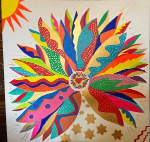 Ma Jacqueline è anche un’artista affermata, pittrice e poeta, con numerosi importanti riconoscimenti in attivo, e quest’anno, in occasione del Giubileo, esporrà l’ultima sua opera pittorica, un mandala (foto), a Roma, in Vaticano, presso il Palazzo della Cancelleria, dal 17 al 21 di questo mese. Nel 2015 ha fondato l’associazione Anna Maria Marino contro la violenza di genere che poi ha esteso il suo raggio d’azione contro il bullismo e tutti i tipi di violenza. L’associazione presta ascolto con tre telefoni accesi 24 ore al giorno e presta anche aiuti concreti a chiunque abbia bisogno e vi si rivolga. Dallo scoppio della Pandemia per covid ha provveduto a fornire cibo a circa 35 famiglie e tuttora provvede.