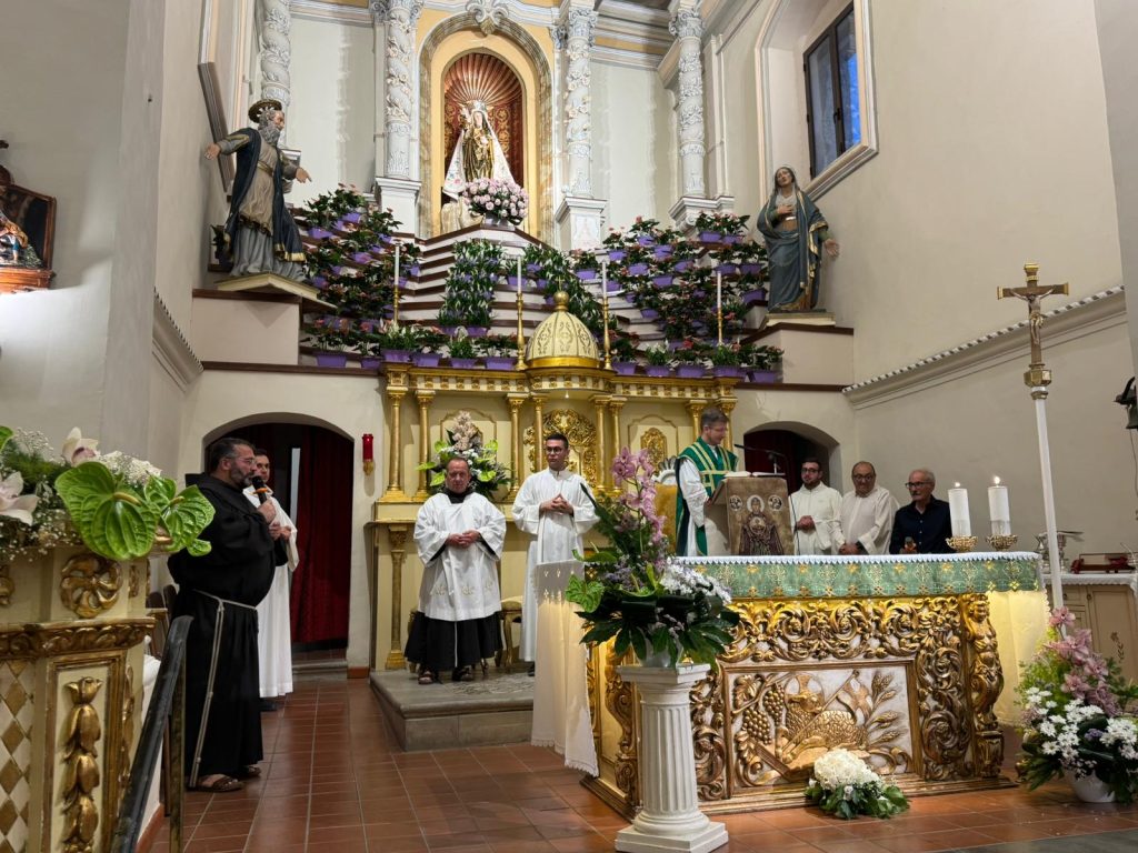 Celebrata domenica 7 luglio in serata, davanti al simulacro di Maria Santissima della Visitazione, la messa dedicata alle donne della confraternita degli “Ignudi” , ovvero le madri, le mogli, le figlie e le sorelle. Decine di donne, con il fazzoletto azzurro al collo, accanto ai confrati, hanno, così, riempito la chiesa. La messa è stata officiata da don Salvatore Rindone e dopo il benvenuto di fra Domenico Gulioso, guardiano del convento di Montesalvo, è toccato al rettore Mimmo Valvo, porgere i saluti, i ringraziamenti e gli auspici. “Ringrazio – ha detto Mimmo Valvo- fra Domenico Gulioso – per la lodevole iniziativa. Auspico che attraverso le donne, cui è dedicata questa cerimonia, i confrati si possano specchiare nella Mamma Celeste che ancora una volta, come a Cana di Galilea ci dice: ‘Fate quello che lui vi dirà”. Durante l’omelia p. Salvatore Rindone ha posto, innanzitutto, l’accento sul Vangelo della domenica, l’ invio dei 72 discepoli a diffondere la Buona novella: “Gesù manda 72 discepoli scelti tra gente comune che viene chiamata ad annunciare l’avvento del Regno di Dio. Il numero 72 ha un significato simbolico, perché rappresenta i 72 popoli conosciuti a quel tempo”. P. Salvatore, che oltre ad essere direttore spirituale del seminario di Piazza Armerina, è docente di filosofia presso lo Studio teologico di Catania e Presso la facoltà teologica di Sicilia a Palermo, ha spiegato come Gesù non ragioni, nell’ inviare i discepoli , col metro umano e ha portato l’esempio delle donne che alla vigilia della partenza di un familiare gli riempiono la valigia del necessario. Invece Gesù non vuole che i discepoli portino con loro provviste, né bisaccia né sandali. Gesù li affida alla Provvidenza . “Non è importante cosa ci portiamo dietro ma cosa ci portiamo dentro quando siamo inviati”. Quei missionari mandati da Gesù a predicare il Vangelo sentono su di loro la mano di Dio provvidente. “Quando ci affidiamo al Signore veramente è provvidente e pensa a tutto lui, tant’è che per questo motivo lui raccomanda ai discepoli di non portare con loro nulla, perché bisogna soltanto cercare il Regno di Dio e il resto sarà dato in aggiunta.