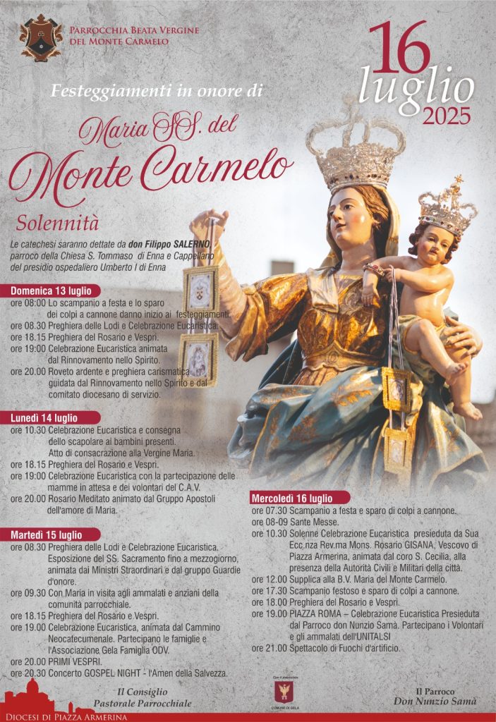 La parrocchia dedicata alla Madonna del Carmelo in fermento. Domenica 13 luglio cominciano gli appuntamenti liturgici in vista della Festività che si celebra mercoledì 16 luglio. Quest’anno il parroco don Nunzio Samà ha scelto don Filippo Salerno per la predicazione della catechesi.