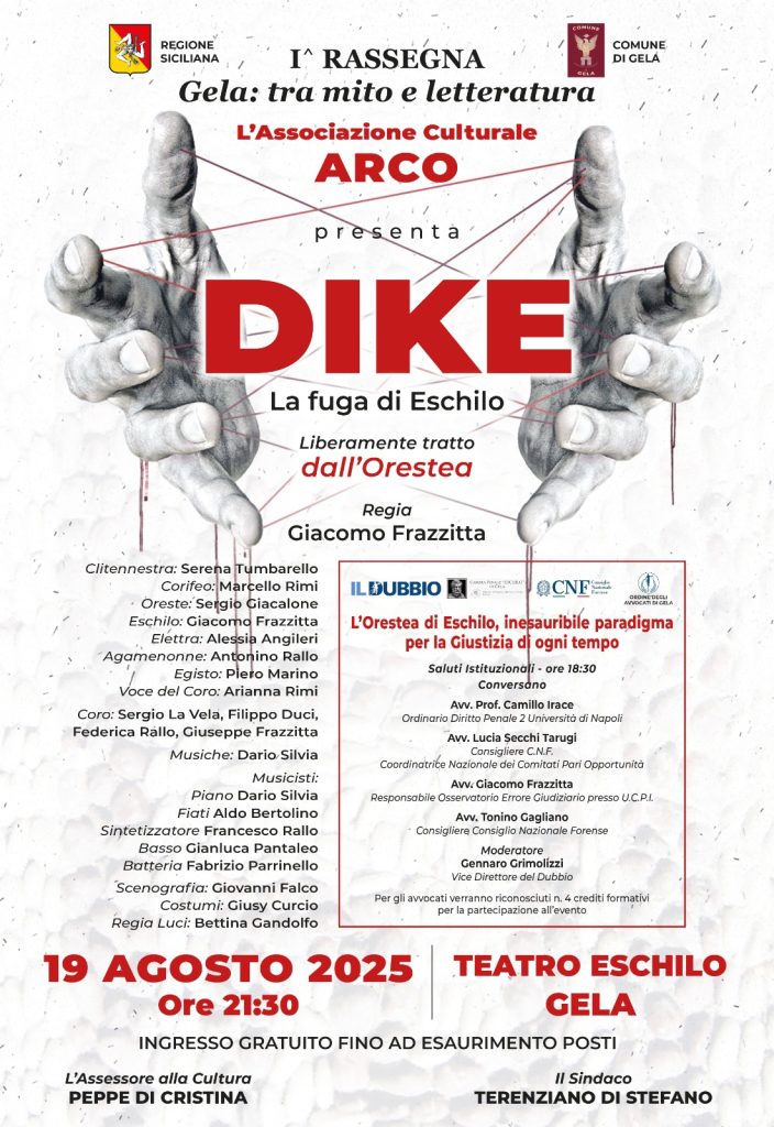Grazie alla collaborazione tra il Comune di Gela, la Regione Sicilia, l’Ordine degli avvocati, il Consiglio Nazionale Forense e la redazione de “Il Dubbio” con l’Associazione Culturale “Arco” di Marsala è stato organizzato uno spettacolo teatrale, preceduto da un evento “culturale – formativo”, secondo una formula da noi non molto praticata ma a cui spesso si ricorre, specie nel periodo estivo, in tante altre città a vocazione turistica.