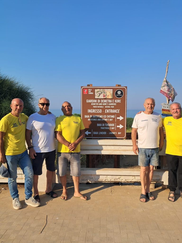 I volontari dell’associazione ‘Gela che cambia’ presieduta da Renato Messina, non finiscono mai. L’accesso al mare dello specchio d’acqua abbandonato dagli anni ’70 diventa sempre più bello. Adesso l’ingresso dei Giardini di Demetra e Kore è più visibile grazie a Nicola Guaia titolare di bar del Lungomare che ha donato il cartello turistico e le bandiere che si vedono nelle foto. E non è il primo.