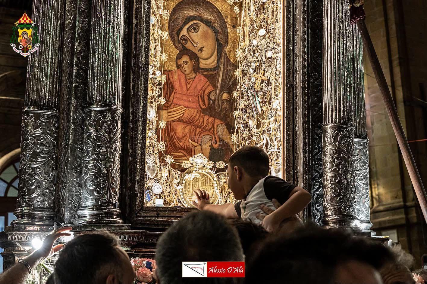 La sacra icona bizantina della Madonna, legata secondo la tradizione al conte Ruggero e alla liberazione della Sicilia, è custodita in un raffinato tempietto d’argento realizzato nel 1627 dal maestro caltagironese Giuseppe Capra. La vara, del peso di circa 800 kg, viene portata a spalla da squadre di portatori, mentre un secondo fercolo, sorretto dalle donne, custodisce un prezioso reliquiario d’argento con un capello della Vergine.