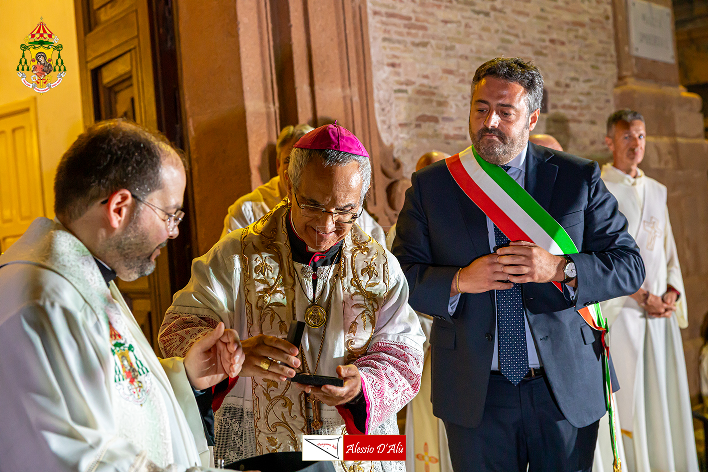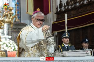 Quindi la preghiera di affidamento della città alla Madonna da parte del sindaco di Piazza Armerina avv. Nino Cammarata che insieme all’amministrazione ha voluto fare dono alla Madonna di una medaglia d’oro che sarà custodita nel tesoro della Cattedrale”.
