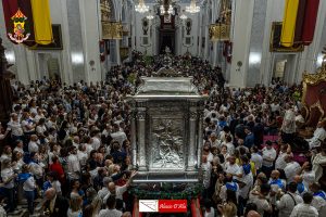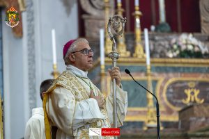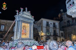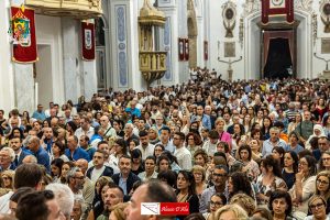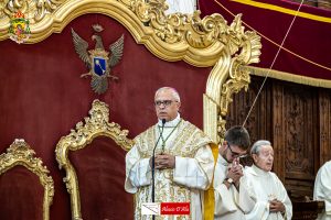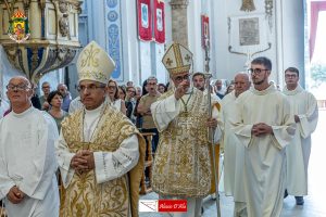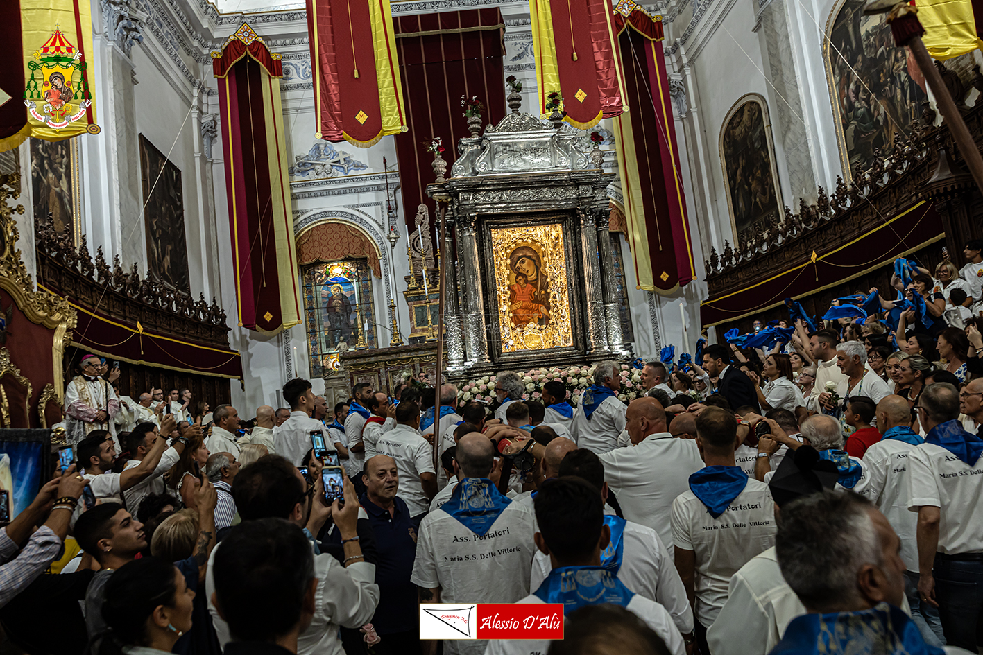Anche quest’anno la città di Piazza Armerina ha vissuto la consueta festa di Maria Ss. delle Vittorie, patrona della città e diocesi di Piazza Armerina. Nel giorno di ferragosto il 15 agosto solennità dell’assunzione di Maria in cielo, l’intera città ma anche tantissimi fedeli da diversi comuni si sono stretti attorno all’icona di Maria. La festa come di consueto è stata preceduta dalla tradizionale “quindicina”. Dal 31 luglio ogni mattina dalle 6.30 la città si è ritrovata nella Basilica Cattedrale per venerare Maria con la recita del rosario e poi con la recita della quindicina composta dal vescovo Mario Sturzo e per la Celebrazione della Messa. Diversi momenti hanno scandito la preparazione alla festa, tra questi certamente il momento suggestivo in cui il tempietto d’argento che custodisce la sacra icona dall’altare maggiore è stato deposto sul presbiterio; e poi i diversi momenti liturgici e celebrativi dedicati a varie categorie di persone: dalle famiglie e bambini alle forze dell’ordine, dagli ammalati ai volontari, dai portatori alle vocazioni. Culmine della festa il 15 agosto. In mattinata la celebrazione delle Messe e poi nel pomeriggio alle 18.30 il solenne Pontificale presieduto dall’arcivescovo di Catania mons. Luigi Renna, concelebrato dal vescovo di Piazza Armerina mons. Rosario Gisana, dai parroci di Piazza Armerina con il servizio liturgico dei seminaristi del seminario diocesano. Quindi alle 20 la solenne processione, con la sacra icona portata a spalla.