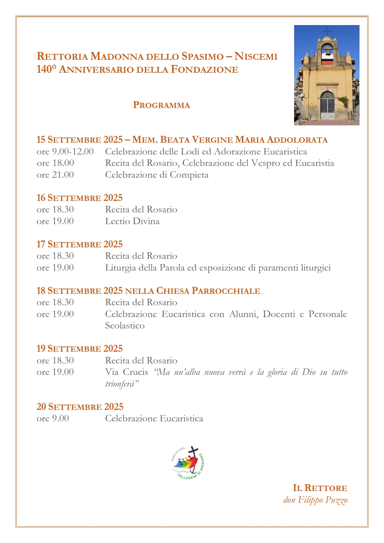 Per commemorare quest’anniversario così particolare dentro il giubileo ordinario della Chiesa Cattolica, la Comunità parrocchiale ha pensato ad una settimana di riflessione spirituale e celebrazioni nella chiesetta che ogni settimana viene aperta al culto.