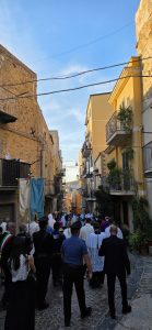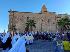 La processione confraternale ha sfilato per le vie principali del centro storico, preceduta dagli sbandieratori e seguita dalla banda musicale, in un clima di preghiera, di giubilo, di gratitudine al Signore. Tutti i confrati, giunti in piazza Dante, si sono accomodati per partecipare alla solenne Concelebrazione Eucaristica presieduta dal nostro vescovo, mons. Rosario Gisana, alla quale hanno preso parte don Filippo Provinzano, sacerdote decano della città, don Filippo Ristagno, don Lino Giuliana, don Valerio Sgroi, il diacono Salvatore Cannizzaro della diocesi di Siracusa ed il diacono scrivente. Il vescovo, nell’omelia, ha evidenziato che l’identità precipua di ogni confraternita è aiutare i poveri, gli emarginati, gli esclusi. Il fine della spiritualità delle confraternite è quello di rispondere ai bisogni concreti della realtà in cui si vive. Occorre, pertanto, ascoltare le necessità dei fratelli, alleviare le loro sofferenze ed ascoltare la Parola di Dio, mettendola in pratica. La manifestazione è stata curata nei minimi dettagli dal presidente diocesano delle confraternite, dottor Gaetano Di Venti. L’ evento è stato particolarmente significativo, perché, come ha asserito la governatrice della Confraternita del Glorioso Patriarca San Giuseppe, l’insegnante Pina Lo Bartolo, l’assolata cittadina buterese è divenuta crocevia di fedeli provenienti da differenti realtà locali, uniti dalla fede, dalla tradizione e dalla carità.