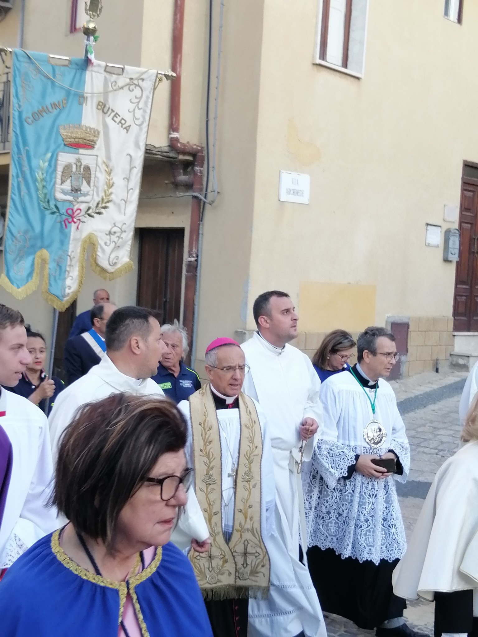Domenica 28 settembre, dalle ore 16 alle ore 21, a Butera, si è svolto il 12º cammino diocesano delle Confraternite. È stato il primo raduno storico per la ridente cittadina, un evento straordinario. Si è registrata la presenza di ben oltre 800 confrati, provenienti da tutti i paesi della diocesi. L’iniziativa è stata promossa dalla Diocesi di Piazza Armerina attraverso l’ufficio diocesano delle Confraternite e dalla Confraternita del Glorioso Patriarca San Giuseppe della città di Butera. Dopo i saluti istituzionali, il corteo religioso ha avuto inizio dal sagrato del Santuario-Parrocchia San Rocco, con la presenza del nostro vescovo, mons. Rosario Gisana, di don Valerio Sgroi, assistente spirituale diocesano, Gaetano Di Venti coordinatore dicesano, del vicario foraneo don Filippo Ristagno, del sindaco dottor Giovanni Zuccalà, dell’amministrazione comunale e di tutte le autorità della città.