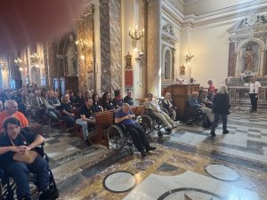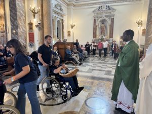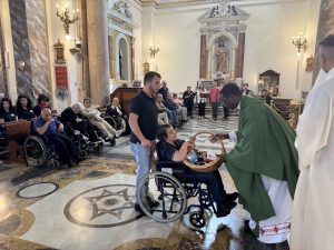 Celebrata domenica scorsa nella basilica santuario della Madonna della Milicia una serena mattinata organizzata dalla sottosezione UNITALSI di Palermo, guidata dalla presidente Irene Leone. Presenti numerosi amici fragili accompagnati da altrettanti barellieri e dame . La mattinata si è svolta all’insegna della spiritualità mariana. Gli unitalsiani sono stati accolti all’esterno della Basilica, da mons Giosuè Lo Bue, parroco e rettore della basilica stessa, e pregando in processione, hanno lucrato l’indulgenza plenaria prevista dal Giubileo della Speranza, essendo stata, elevata, dall’Arcivescovo di Palermo, monsignor Corrado Lorefice, la chiesa della Madonna della Milicia, a chiesa Giubilare. Subito dopo, è stata celebrata la Santa Messa , officiata da padre Ciza Celeus , vicario parrocchiale che durante l’omelia ha sottolineato, rivolgendosi ai numerosi malati presenti, accompagnati dal personale UNITALSI, come la vita di ogni cristiano pur segnata dalla sofferenza possa e debba essere un continuo dar lode a Dio, poiché nella sofferenza stessa è presente Cristo, che non va dimenticato, è stato il paradigma della sofferenza attraverso la quale ogni uomo che crede in Lui, nel Padre e nello Spirito Santo, giunge alla risurrezione, quindi alla salvezza eterna. E non c’è ringraziamento migliore se non il partecipare all’Eucaristia, che significa, appunto, rendere grazie : “Gesù, maestro, abbi pietà di noi. Oggi dobbiamo vivere le sue sofferenze con ottimismo, quindi preghiamo per non vedere sempre il bicchiere mezzo vuoto. Se vediamo due braccia che ci sorreggono sono quelle di Dio. Bisogna essere – ha concluso-al servizio del cuore d’amore di Dio e non cascare nella logica mondana. Chiediamo alla Vergine d’intercedere per noi, affinché questo sia reso possibile”. Al termine, la presidente, Irene Leone, ha ringraziato tutti per la riuscita dell’evento che si è concluso con un sobrio momento di agape fraterna, nel salone parrocchiale.