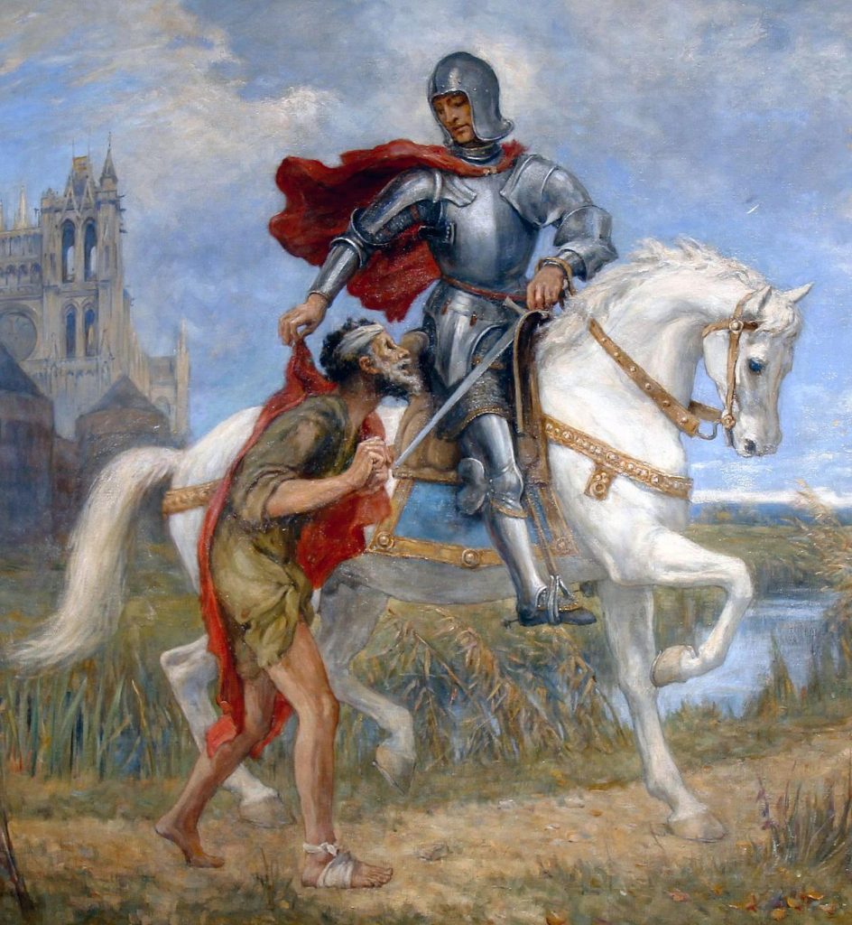 Sembra che intorno agli anni 338-339, quando Martino serviva nella cavalleria imperiale ad Amiens, abbia avuto una visione che rappresentò un momento fondamentale per lui, ma anche l’episodio della sua vita più raccontato in assoluto, nonché un motivo di grande ispirazione per pittori, scultori e poeti. Martino quel giorno era alle porte di Amiens con la sua truppa di cavalieri quando vide un mendicante seminudo, scalzo e infreddolito; l’uomo gli fece una gran pena, quindi Martino decise di scendere da cavallo e avvicinarsi all’uomo: si tolse il mantello e con un colpo di spada lo divise a metà, offrendo una di queste al mendicante perché si coprisse. L’uomo la prese e rabbrividendo, dopo aver ringraziato Martino, si coprì. La notte stessa, Martino sognò Cristo che andava da lui per rendergli la metà del mantello di cui si era privato e ne sentì anche la voce mentre diceva agli angeli che lo accompagnavano: “Quest’uomo è Martino, un soldato romano che pur non essendo cristiano, mi ha dato il suo mantello”. Al suo risveglio, il Santo si accorse con enorme stupore che il mantello era di nuovo intatto. Divenuto oggetto di culto, il mantello fu conservato dai re merovingi, da quelli carolingi e poi diviso tra i santuari dedicati a san Martino, ognuno dei quali conservava un pezzo di stoffa di questa reliquia.