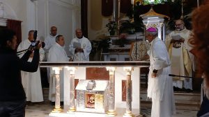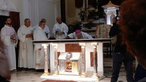 Nella giornata di mercoledì 26 novembre in occasione dell’inizio della novena del Beato Girolamo De Angelis, ha avuto luogo presso la parrocchia di san Bartolomeo, sede del culto del beato martire ennese, il solenne rito della dedicazione della chiesa e consacrazione dell’altare presieduto dal vescovo della diocesi mons. Rosario Gisana.