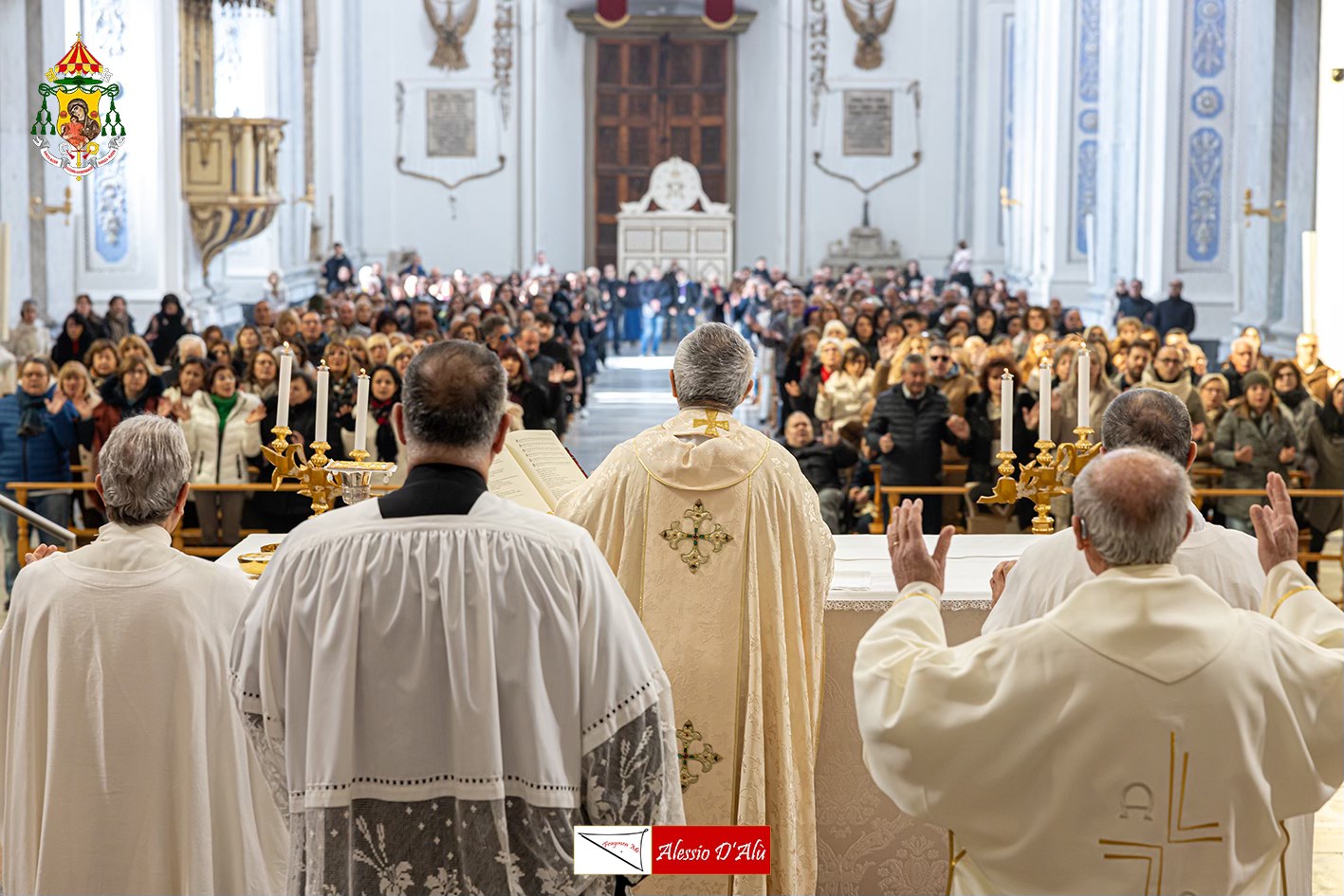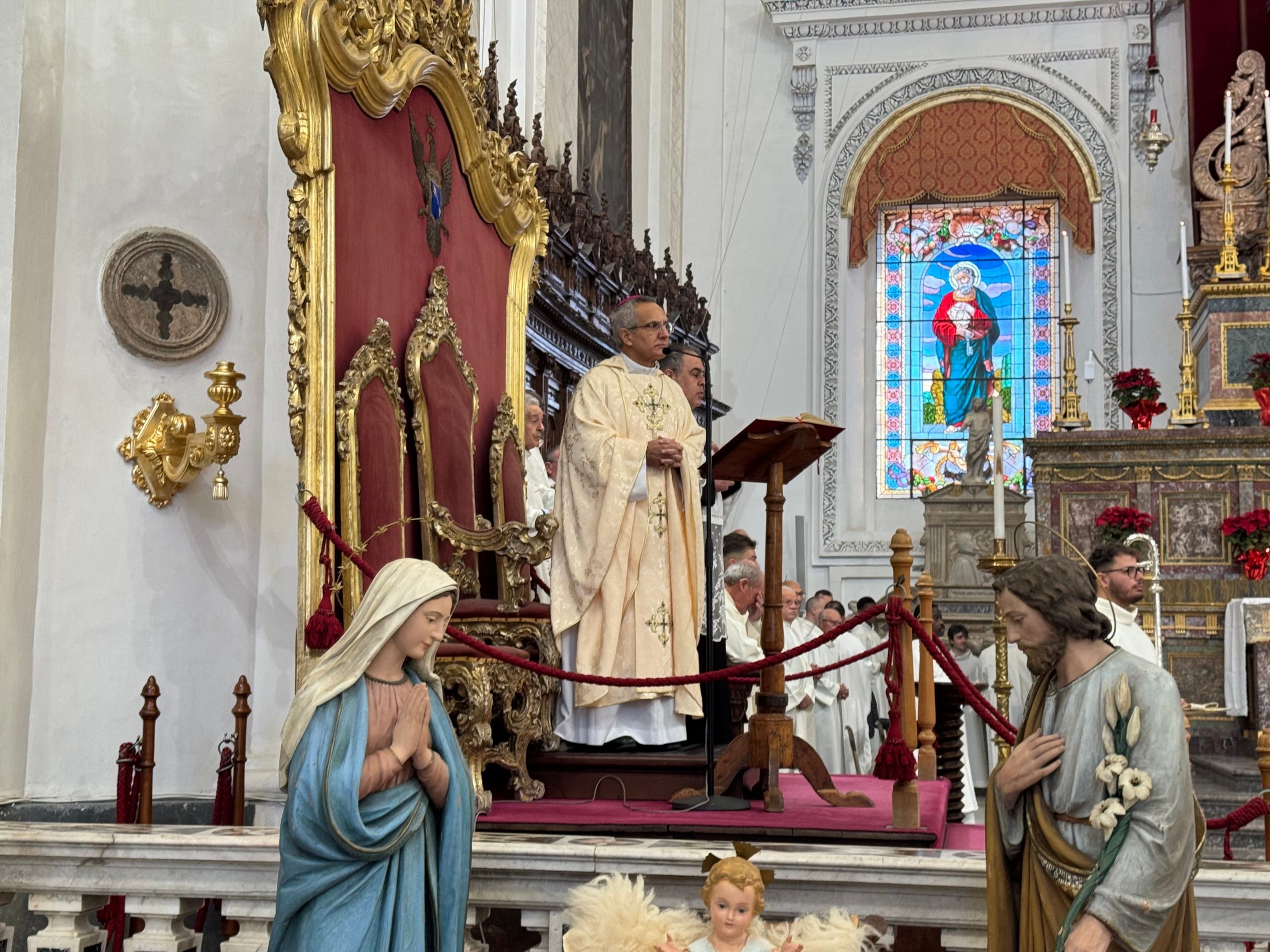 E’ stato celebrato domenica 28 dicembre in Cattedrale a Piazza Armerina il solenne pontificale per la chiusura dell’anno giubilare. La liturgia è stata presieduta dal vescovo, mons. Rosario Gisana, con la presenza del clero diocesano, dei diaconi, dei religiosi e dei seminaristi in una chiesa affollata da molti fedeli provenienti da tutti i vicariati ed anche alcuni fratelli fragili provenienti dalla Comunità “Adelina” di Villarosa. Nella sua omelia il Vescovo ha fatto riferimento alla Speranza, tema del Giubileo, iniziato nella Notte Santa del Natale di Nostro Signore del 24/25 dicembre del 2024 con l’apertura della Porta Santa nella Basilica di San Pietro a Roma da Papa Francesco e che sarà chiuso per l’Epifania di Nostro Signore, il 6 gennaio 2026 da Papa Leone XIV.