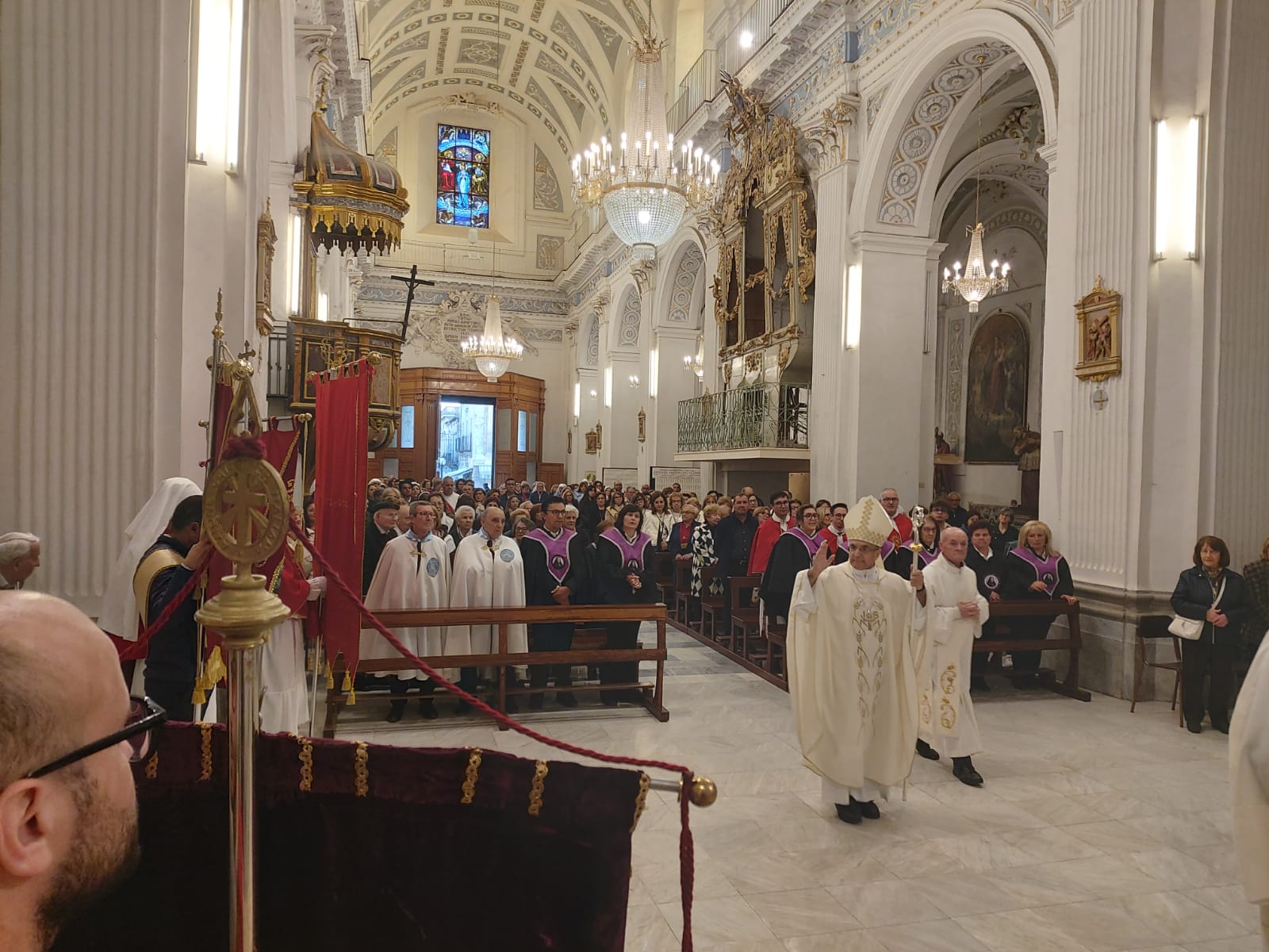 Molto sentita la celebrazione eucaristica in Chiesa Madre presieduta dal vescovo e concelebrata dal clero locale unitamente al Vicario foraneo della città. Il presidente del Consiglio comunale intervenuto alla celebrazione ha espresso apprezzamento del gesto avuto nei confronti dei propri concittadini colpiti dall’evento disastroso. Nell’omelia mons. Gisana ha voluto sottolineare la presenza delle Confraternite in città e la straordinaria partecipazione dei confrati. “Ciò denota il vero volto dell’azione svolta dalle confraternite nel loro ruolo di attenzione verso le sofferenze sociali e i bisogni delle persone.