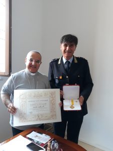 Questa mattina, il Vescovo mons. Rosario Gisana ha consegnato al comandante della Polizia Municipale di Piazza Armerina e Aidone un Onorificienza Pontificia. Si tratta di un particolare riconoscimento (una pergamena e una medaglia) per il servizio reso in occasione della visita di Papa Francesco a Piazza Armerina il 15 settembre 2018