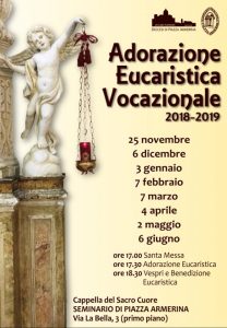 Giovedì 6 giugno, a partire dalle ore 17, avrà luogo l’ultimo incontro per quest’anno Pastorale con l’Adorazione Eucaristica Vocazionale. Gli appuntamenti organizzati dalla comunità del Seminario Vescovile si sono svolti ogni primo giovedì del mese nella Cappella del Sacro Cuore del Seminario Vescovile di via La Bella, con la celebrazione della Messa, un momento di […]