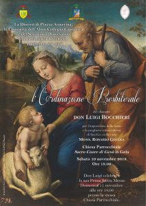 Il prossimo 10 novembre, sabato alle ore 18 nella parrocchia Sacro Cuore di Gesù a Gela, il vescovo ordinerà presbitero il diacono don Luigi Bocchieri della medesima comunità parrocchiale. Don Luigi, era stato ordinato diacono lo scorso 7 aprile nella cattedrale di Piazza. Alla vigilia dell’ordinazione, don Luigi “si racconta ai nostri lettori” In questi […]
